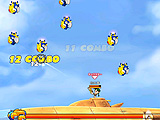 まだ撃っても狙い通りに当たらず,対戦してもボコボコに倒されるばかりで悔しいという人は,練習モードで特訓するしかない。練習モードには「固定射撃」「移動射撃」「手りゅう弾投てき」の三つが用意されている。最も簡単な固定射撃は,飛行船に乗って空から降ってくる敵を撃ち落とすというもの。一定数を倒すとレベルが上がり,降ってくる敵の数やスピードが変化する。飛行船が大ダメージを受けるとゲームオーバーだ。ゲーム内でも「ミニゲーム」と表示されているだけあって,練習というより昔懐かしい家庭用ゲームで遊んでいる気分が味わえる。