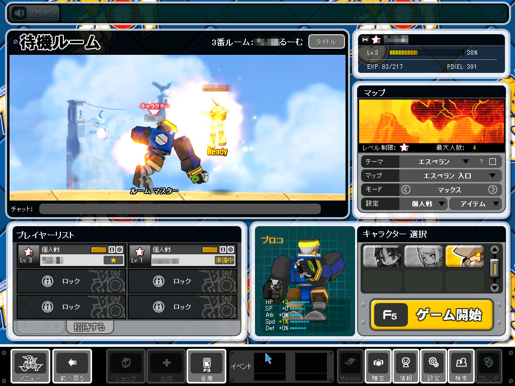 キャラを選んでチュートリアルを終えたら,あとは実践訓練あるのみ。Lv.1の初期装備で猛者達の集まる対戦ルームに挑むことになるのだが,NPC相手に練習可能なモードを用意してほしいかな……(経験値やゲーム内通貨はもらえなくていいので)。ともあれ,操作やルールの難しいゲームではないので,勇気を出して対戦だ。
