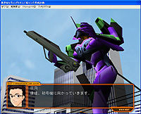 | 使徒との戦いでは,エヴァも使徒も3D描画でぐりぐり動く。カメラアングルもそれなりに凝ったものになっており,なかなか見応えがある |