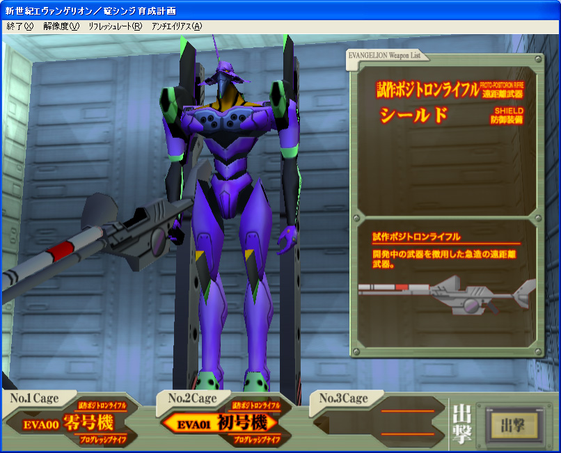 ストーリーの途中には使徒との戦闘が入り込んでくる。装着する武器を決めて出撃するのだが,エヴァが3Dでぐりぐり動き,走り回るさまはなかなか壮観だ。