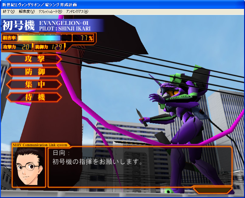 戦闘での指示は「攻撃」「防御」「待機」などシンプルなもので,正直なところ戦闘自体のゲーム性は薄い。やはりゲームとしては育成部分が重要なのだといえよう。なお,ストーリーに応じて零号機や弐号機が一緒に出撃することがあり,これらにも同様の指示を与えられるが,実際のところ戦いは自機の活躍如何で決まる。