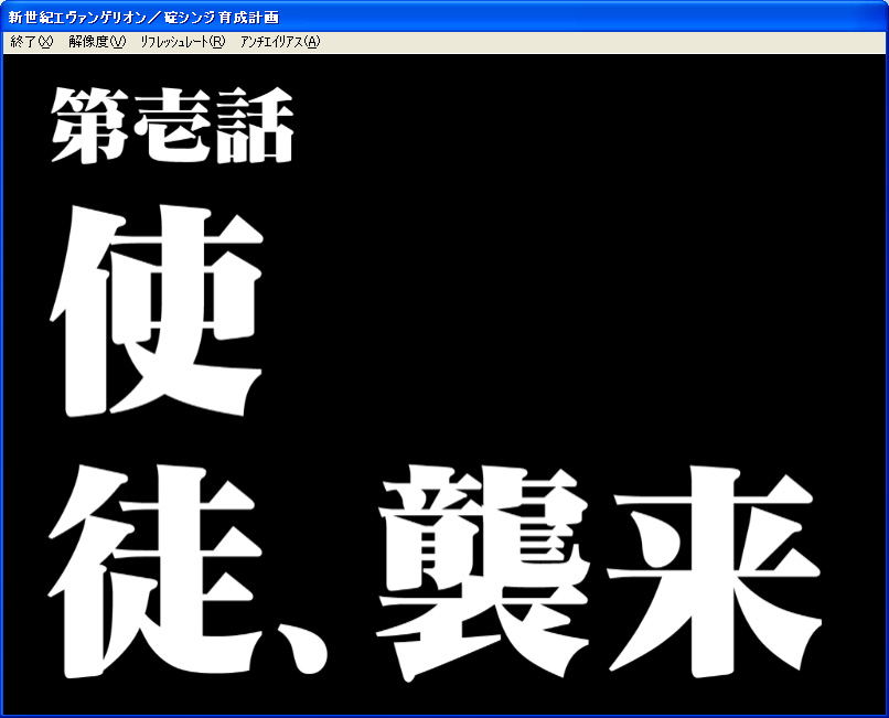 | ゲーム中で出遭えるかもしれない,ひな祭りパーティの光景。すっかりドタバタ喜劇のような場面である | ルートによってだいぶ違うヒトになる,シンジの父ゲンドウ。シリアスキャラだけにパロディには格好のエサだ | テレビシリーズでおなじみ,市川崑風に極太明朝で書かれる各話タイトルは,本作にも踏襲されている |