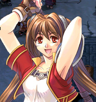 工房都市ツァイスの天才技術者ラッセル博士の孫娘。人当たりがよく朗らかで,誰からも愛される性格の持ち主だが,マッドサイエンティスト的な祖父に似てか機械には目がなく,機械を目の前にすると夢中になってしまう。その特性にふさわしく,戦闘では「導力砲」を使う。しかし工房都市の"ツァイス"って,機構的にはむしろ不安なカメラメーカー名なわけだが,そのへんはどうなのだろう? |