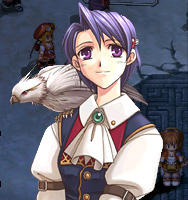 ルーアン地方にあるジェニス王立学園に通う学生。学校が休みの日は近くの孤児院で手伝いをしており,優しい性格もあって子供達から慕われている。見かけによらない剣の腕前の持ち主で,学園のフェンシング大会では優勝している。シロハヤブサのジークがいつもそばにおり,戦闘時の"クラフト"(攻撃手段)は大半がジークを使ったものである。また,王国軍の親衛隊とコネがあるなど,何やら訳アリげなところも。 |