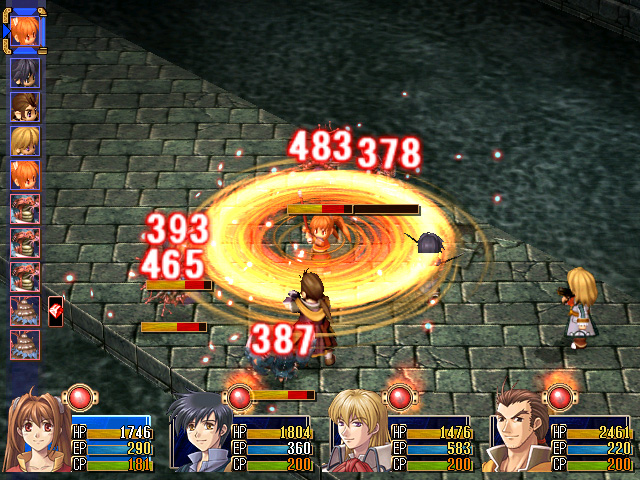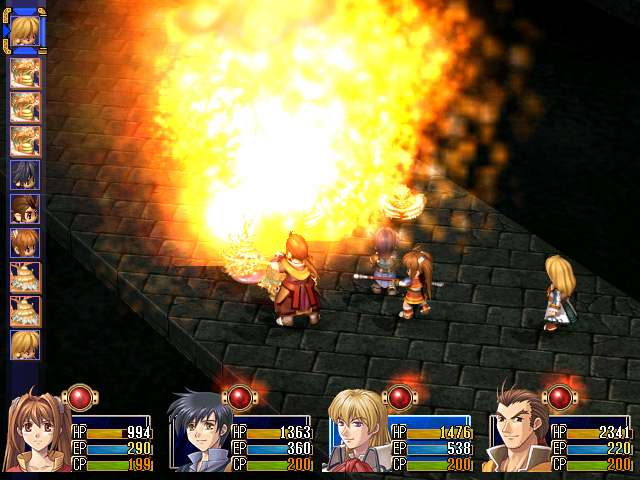 | クォータービューの画面でポリゴンのチビキャラを操作するタクティカルRPG「英雄伝説VI 空の軌跡」。話の展開と登場人物の設定は,さながらほのぼの系のキャラゲーだ |