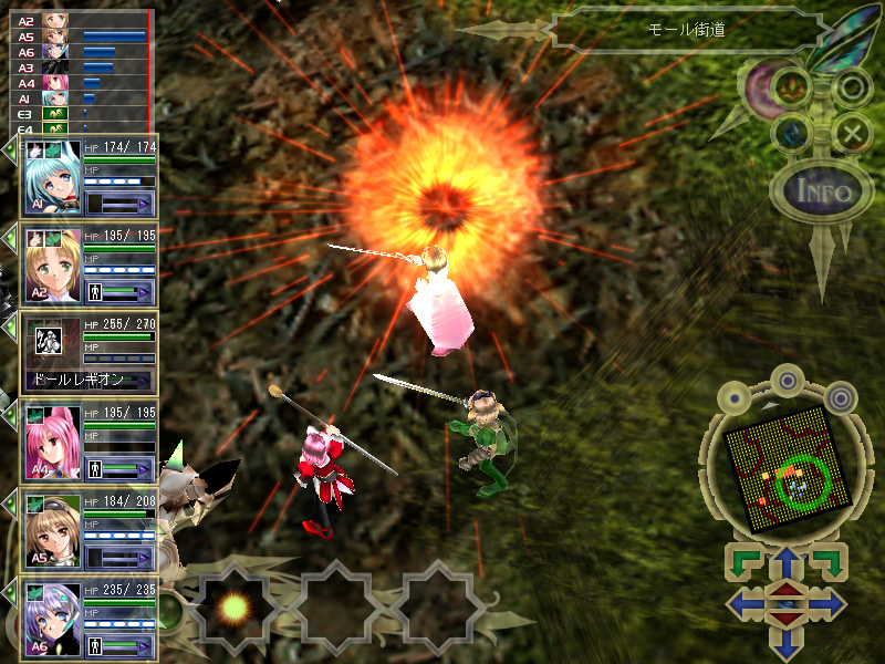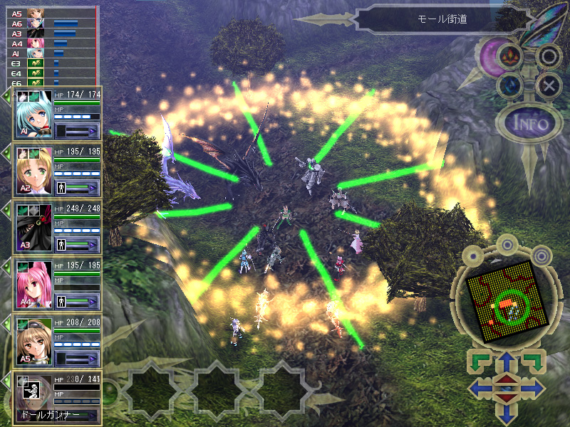 これらの要素を含んだ本作の戦闘は屋内/屋外とりまぜたもので,ステージとキャラクターの属性によって,大きなボーナスやペナルティが付くところは「ウェスペールの迷宮」から引き継がれたコンセプトである。