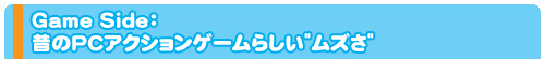 本作を今の基準で見ると,何より難度の高さが目につく。操作に対する反応はワンテンポ遅れるし,アタリ判定も分かりにくい。もっとも当時のPCのアクションゲームは,総じてこんな感じだったのだが。