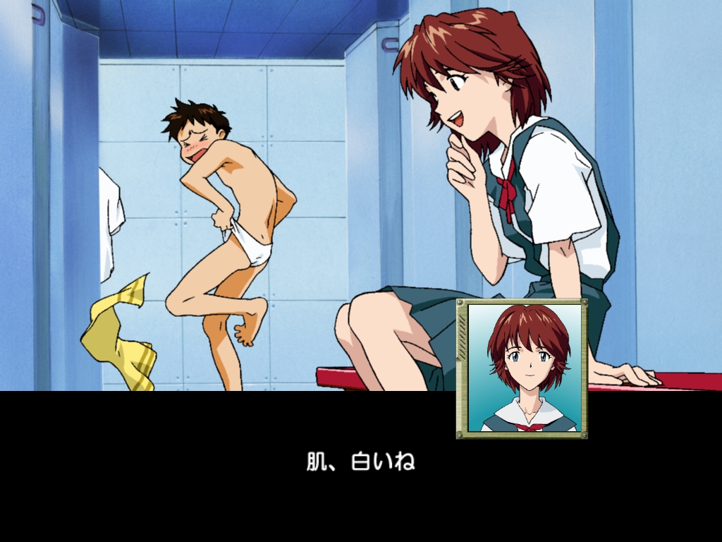 本作ではそれに,清純さと狡猾さと神秘性を兼備しながらも,初対面から主人公好き好きモード全開の転校生が加わる。これによってアスカが「急にモテ出した主人公に嫉妬する近所の幼馴染み」という,ある種ツンデレ的な立ち位置に来たので,前半は完全にラブコメ風味になっている。同級生の鈴原トウジと相田ケンスケの存在は,完全に引き立て役の悪友であり,彼らは逐一,主人公の恵まれた環境をプレイヤーに印象付けてくれる。