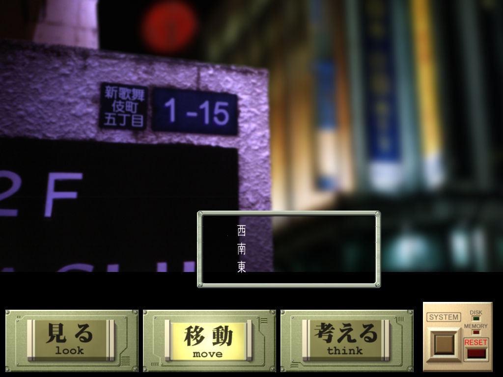街の中を移動する際の選択肢が「東」「西」「南」「北」で,碁盤目状のマップをノーヒントで歩く……。テキストアドベンチャー時代を彷彿とさせるギミックが案外楽しかったり |