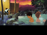デートスポットは三か所あり,温泉では条件次第でこのようなイベントCGが登場する。もっとも,どういう経緯で初デートの少年少女が混浴に至ったかは説明されていないが |
