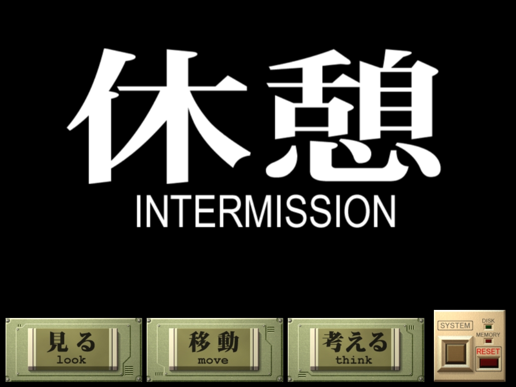 | 劇場版「DEATH(TRUE)2」というべきか,長編映画でおなじみの,「休憩」(インターミッション)である。DVD-ROMなので,ディスクの入れ替えもなく続きをプレイできる |