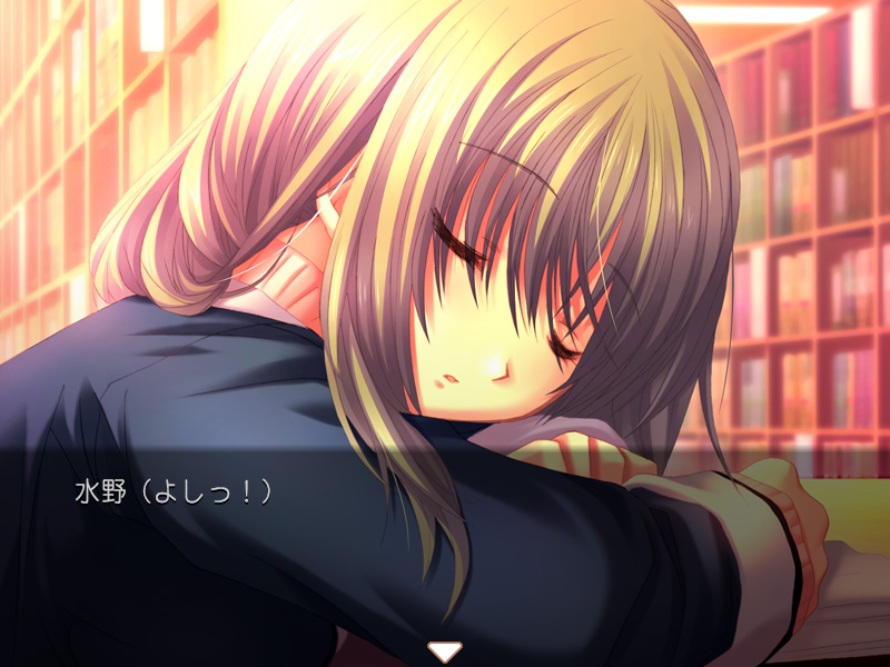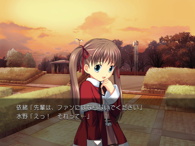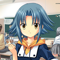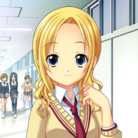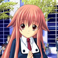 主人公の1学年下の2年生。体は小さいが,騒がしいくらいに元気で明るい少女で,放送部所属。実はアイドル声優として活躍しているのだが,主人公は出逢うまでそれを知らなかった。声優の仕事は好きなのだが,兄や両親などからは反対されている。ちょっと前ならこういう役回りのキャラクターの仕事は純粋な「アイドル」だったのだが,このあたりはキャラクターゲームらしい設定というべきか,「アイドル」の凋落ゆえと評すべきか。(CV:野川さくら) |