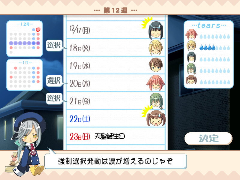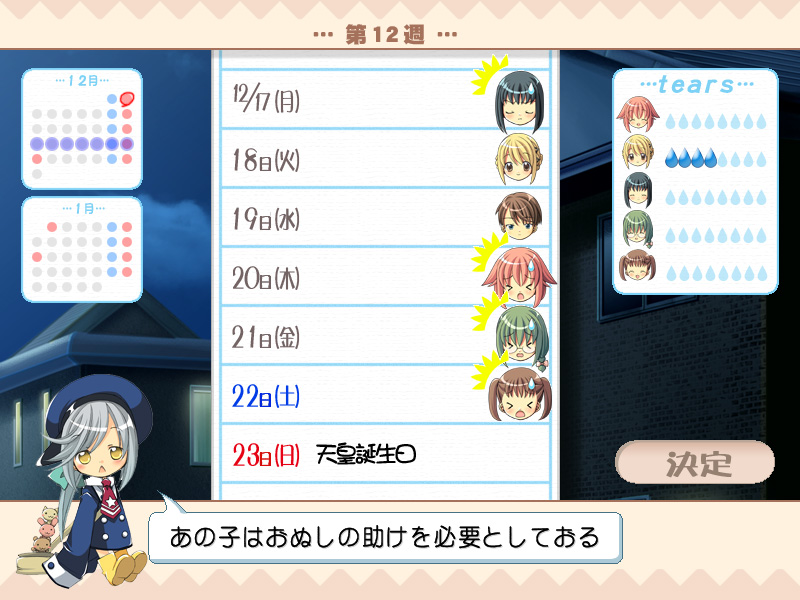 | 登場するキャラクターは全員,何らかの悩みや迷いを抱えている。主人公と関わっていく中で,何かのきっかけで涙があふれてくることがある。これがテーマになっている「彼女の流す,ホントの涙」である。とはいえ,左端はどう考えてもそのような涙ではないのだが |