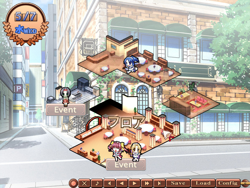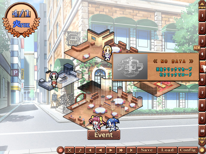 とはいえ,18禁版,Dreamcast版と比較してプレイアビリティが大きく向上している点は評価したい。とくにシステムの細かい操作性が改良されており,毎日の仕事場所選択の前にオートセーブが行われる(最大10個)ほか,画面右端にマウスカーソルを持って行くことでデータスロットを開き,左クリックでセーブ,右クリックでロードというように,最少の手間で操作できる。