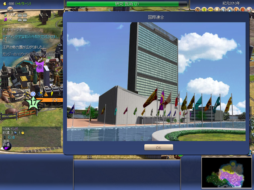このとおり,国際連合というギミック一つを取ってみても,Civ4からは歴史的リアリズムが十分に感じ取れる。もっともそのリアリズムは,「ある種独特の」という但し書きをつけたほうがよい部類のものではあるが。