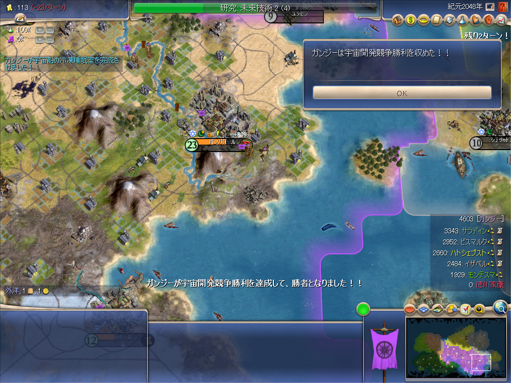 しかしながら,Civ4はそうした「大変に完成度の高い歴史テーマのストラテジーゲーム」であるに留まらない。いやむしろ,「大変に完成度の高い歴史テーマのストラテジーゲーム」だからこそ,ゲームで展開される俺様的インナーワールドを現実と見比べながら,批評的視点で楽しめる作品としても,魅力的なのである。