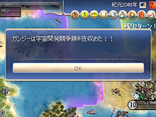 外交勝利。とはいえ,世界に文明は四つしか残っていなかったりする。ある程度の軍事的成功なしには成立しないだろう |
