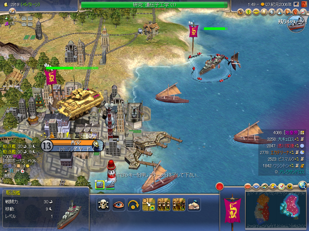 また,自国の経済が順調であれば,「他文明の侵略を思い留まらせるだけの軍備」で専守防衛に努めることが,経済的には最もお得になる。どこかで聞いたような話ではあるが,Civ4ではきちんと有効な戦略として機能しているわけだ。