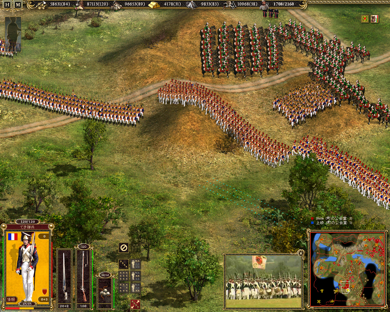 という2点だ。(1)はもちろん重要だが,(2)に関してはあまり差となって現れてこないことが多い。例えばフランスで騎兵育成所を作るには,町の公会堂 → 歩兵育成所 → 研究開発施設 → 騎兵育成所という段階を踏む必要があるのに対し,オーストリアならば町の公会堂 → 騎兵育成所と,すぐに建設できる。