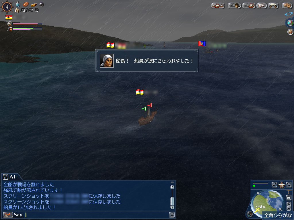 プレイヤーの売買によって刻々と相場が変動する交易品。嵐や疫病といった予測しづらいトラブルで足止めを食らうこともある航海。そんな不確定要素達と戦うことになる「交易」も,本作の大きな魅力なんだなぁと再認識した筆者。今後はより地方海賊としての活動を活発化し,収奪によって得た仕入れ値ゼロの交易品を織り交ぜつつ,交易収入の拡大を図ろうと思う。