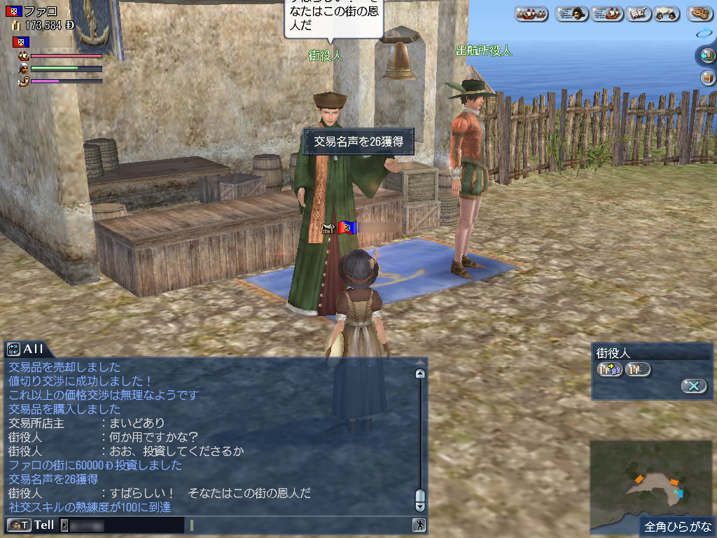 前回お伝えした貸金庫の利用を目指し,日々"貢献度"稼ぎに精を出している筆者。商人キャラクターを操作しているので基本的には投資による貢献度アップに注力しているのだが,同時に調理スキルの鍛錬にも励んでいるため,自転車操業状態でなかなかお金が貯まらない。預金も合わせて50万D(Ducat。ゲーム内の貨幣単位)弱の財産はあるものの,船や装備品,レシピなどを購入してしまうとあっという間に貧乏になることが予想されるので,大規模な交易にも着手しづらい状況が続いていたりする。