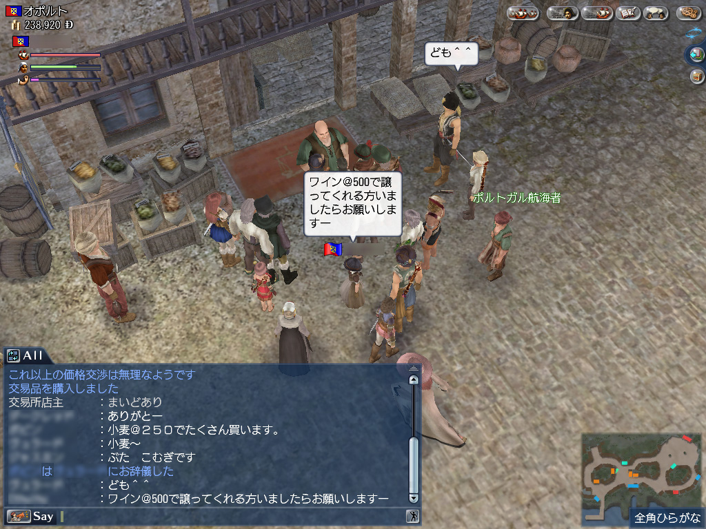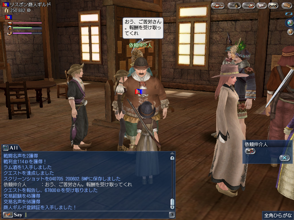 そんな状況を打破すべく,今まで以上に海上戦闘をこなし,戦闘経験・名声とともに貢献度を稼いでみようと思い立った。ホームタウンであるリスボン周辺の小者NPC海賊をバンバン沈めていくプレイは,日頃生産と交易ばかりしている根っからの商人にとっては新鮮で,普段のプレイではなかなか味わえない爽快感が得られる。海上戦闘に不慣れな人も,たまには弱そうなNPC海賊船を襲撃して,お国のために頑張ってみるのもよい。