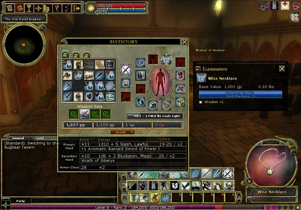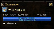 バザール内のNPCを順に訪ねてみたところ,なんと宝石商のLukas PietreというBrokerが「Wise Neckless」というアイテムを扱っているではないか。装備すると判断力が+1されるネックレスだ。私はこれを1001GPで即座に購入し,装備してみた。
