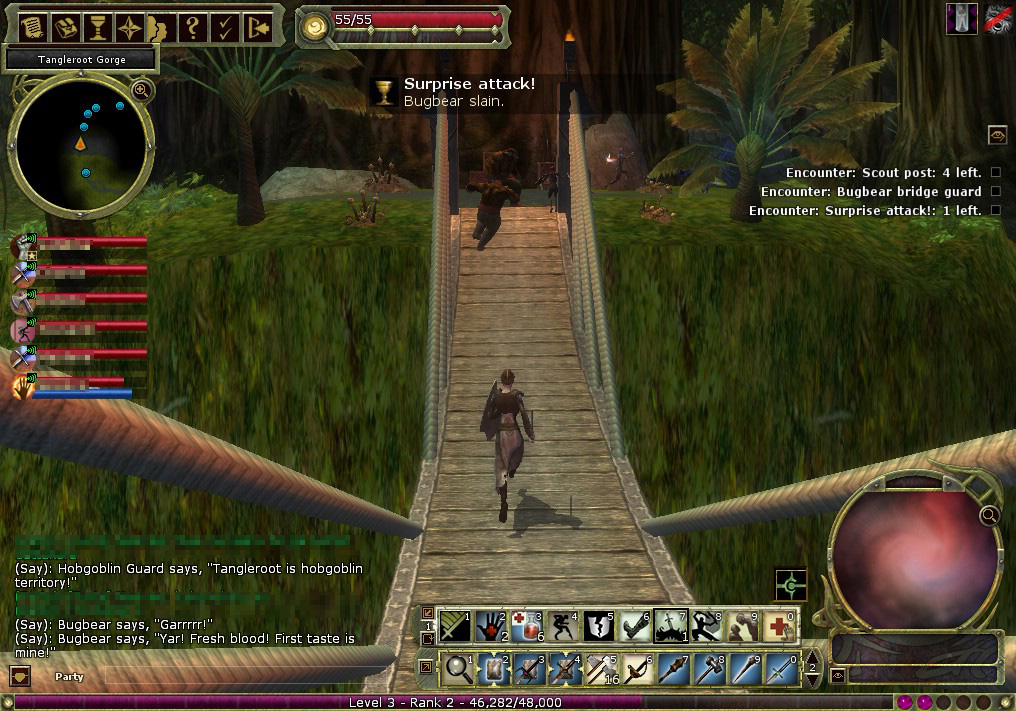 これまで紹介してきたクエストと同様,この「Assault on Splinterskull」もDDOでは定番のクエストに分類される。クエストの舞台となるエリア名(Tangleroot Gorge)を取って,通称「Tangleroot」と呼ばれることが多い。クエストの最後にもらえる固定報酬がいいアイテムばかりなので,複数入手するために繰り返しプレイする人もよく見かける。