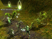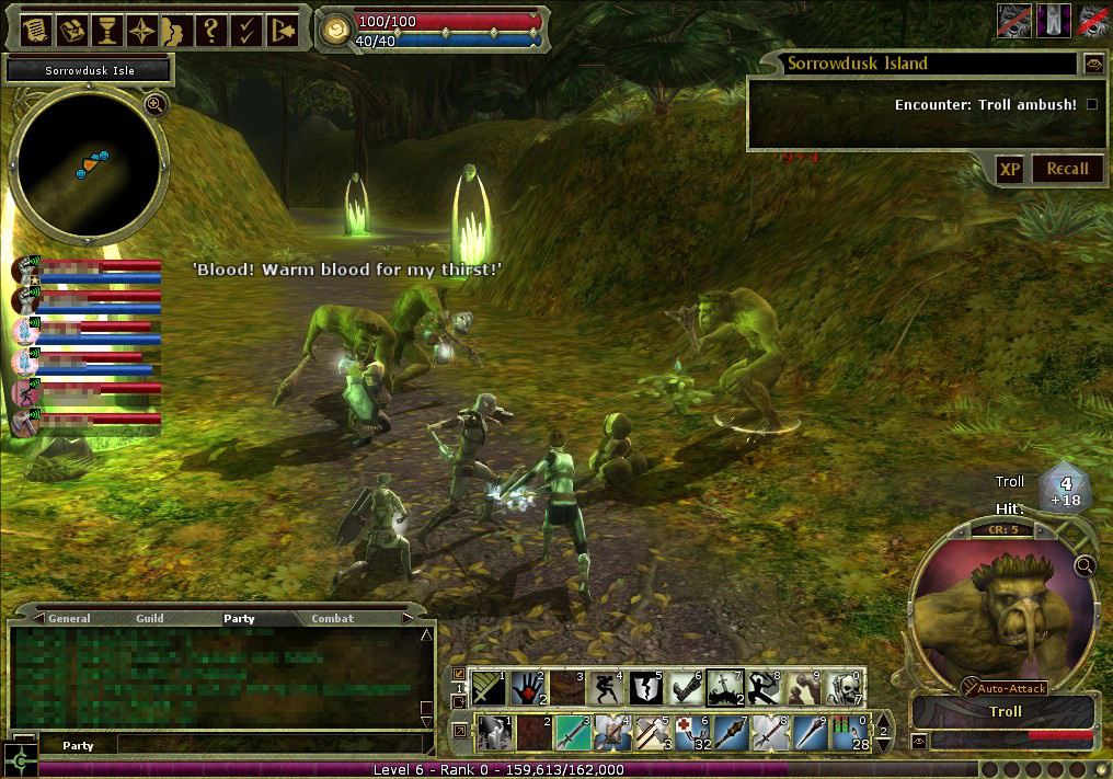 | Sorrowduskはトロルが多数棲みつく島だ。トロルはHPの自動回復能力を持っているため,戦闘を長引かせると危険 |