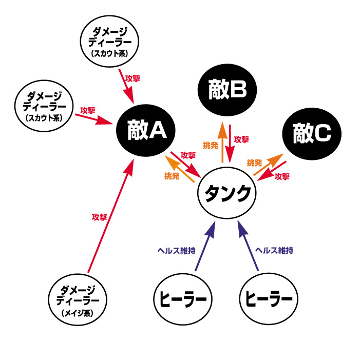 それでは本題に入ろう。「クラウドコントローラー」の重要度が引き下げられたEQ2において,グループにどうしても必要な役割は「タンク」「ヒーラー」「ダメージディーラー」である。