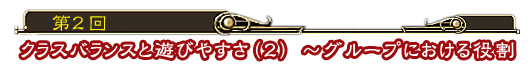 前回述べたように,EQ1のクラスバランスは「切ったり貼ったりした挙げ句,形は歪になったがなんとか釣り合いのとれたヤジロベエ」を連想させるような,どこかあやういものであった。その点,EQ2において意図されているクラスバランスは,自分&他人の役割を捉えやすい,きれいに整ったものとなっている。どのクラスもグループ構成によっては少し振る舞いを変える必要があり,実際その選択肢を与えられているところもポイントだ。