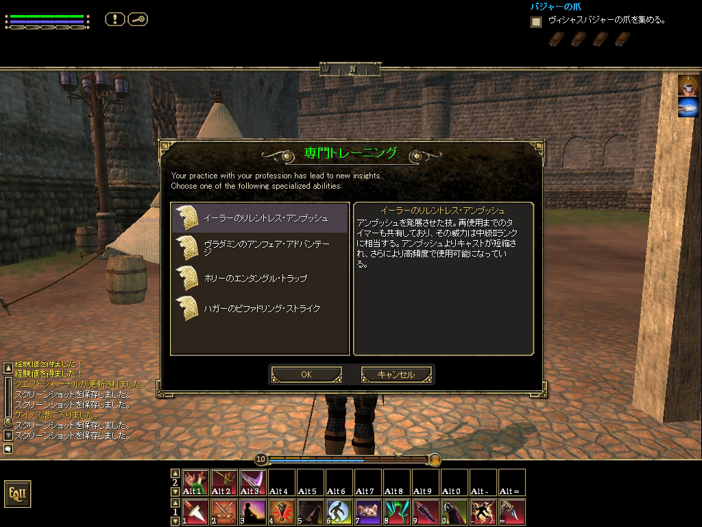 EQ2の世界は"レベル1のキャラクターでも行こうと思えばどこにでも行ける"という具合にはなっていない。そもそも,すべてのキャラクターはケイノスもしくはフリーポート,どちらかの町の所属となるため(その前に全員が難民の島からスタートするが),ゲーム開始早々に人の集まる場所まで命がけで移動するような必要も生じない。町を一歩出れば,そこはもう適正難度のゾーンなので,簡単にハンティングを始められるのだ。
