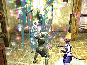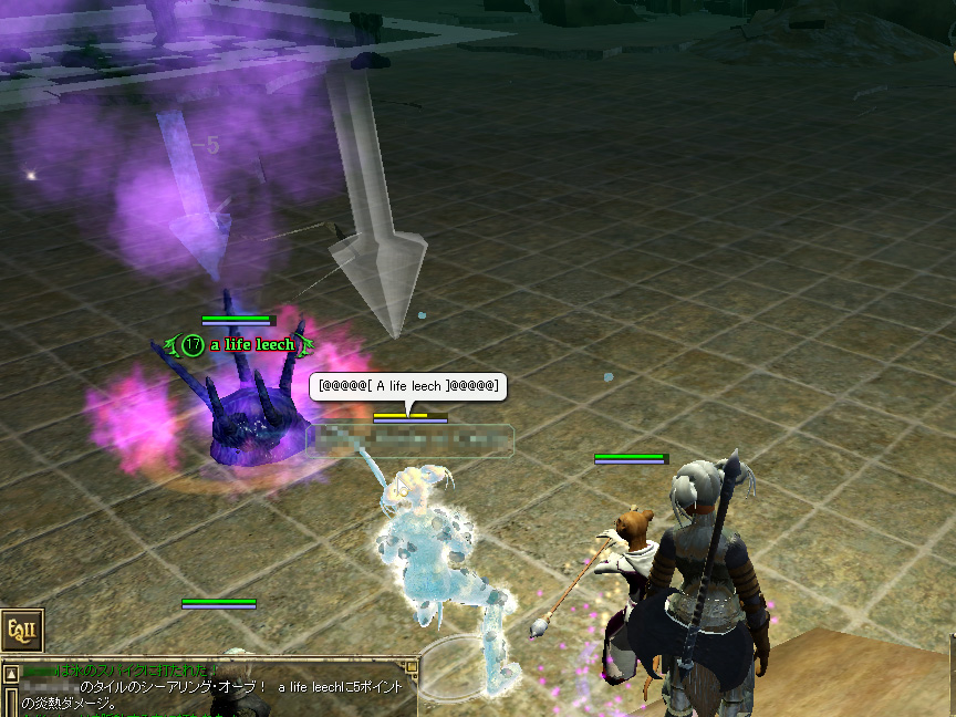 | EQ2では"ターゲット"の頭上に立体的な矢印が表示されるが,これは"対象のターゲット"の頭上にも表れる。敵の側面や背後をとりたい場合は,これも目印にすると良い |