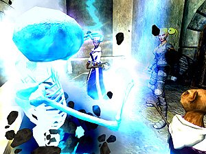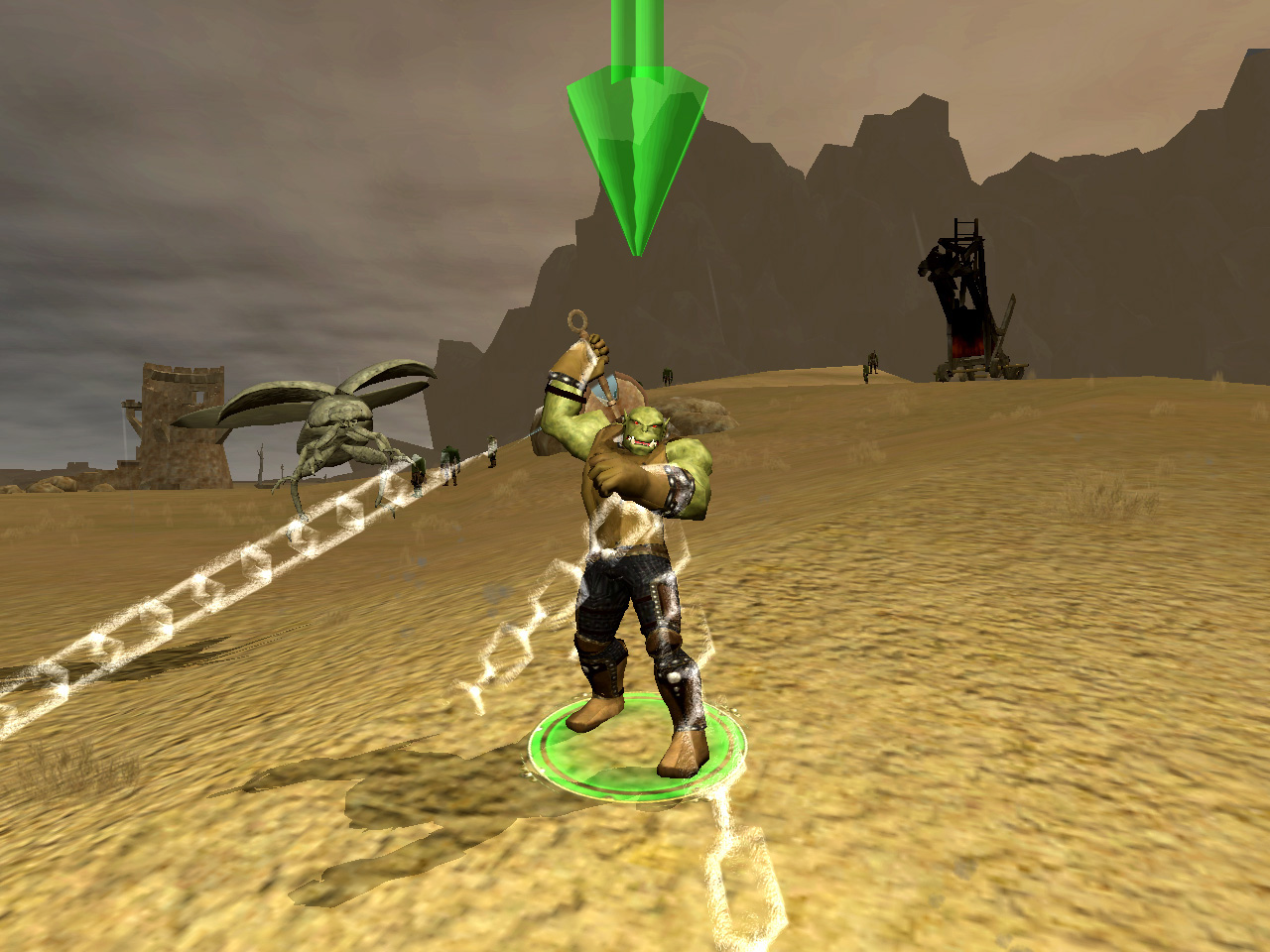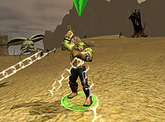 | レベル20までのメイジが使う足止め魔法は,敵を魔法のクサリのようなもので拘束するスペルだ。ファイタープレイヤーはパーキングに対応できるよう,このエフェクトを覚えておくとよい |