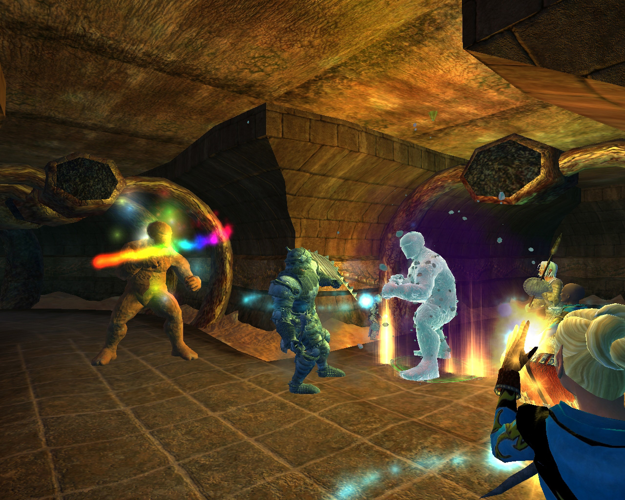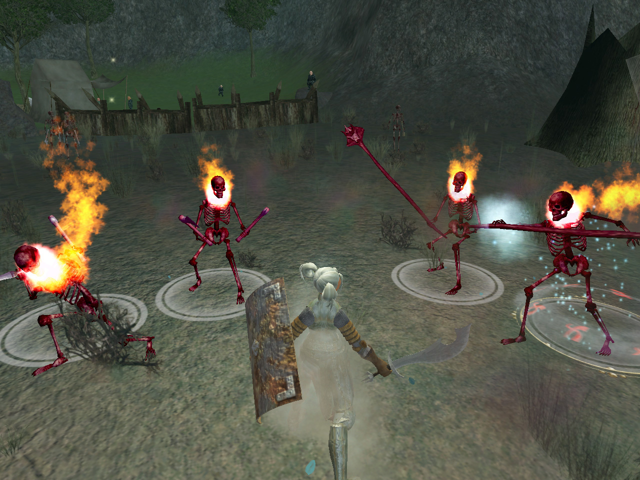 移動制御や無力化の魔法を使って,自分達に有利なようにMobの群れをコントロールすることを,「クラウドコントロール」と呼ばれている。「クラウド(=Crowd)」とは"群衆"や"大群"を指す言葉だ。前作「エバークエスト」(EQ1)では,クラウドコントロールの重要度は非常に高かった。「エバークエストII」(EQ2)では,そこまで重要なものにはなっていないが,クラウドコントロールを得意とする"エンチャンター"というクラスの存在からも分かるように,戦術の一つとしてはきちんと組み込まれている。