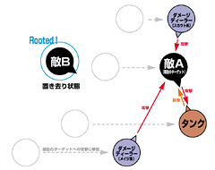 ただ,やはりメスメライズに比べれば,パーキングは使いづらい作戦である。使用にはある程度のスペースが必要になるほか,魔法を使うタイプのMobには効果があまりないという弱点もある。少しぐらい距離が離れたところで,魔法の使用にはほとんど影響がないからだ。また,そもそも足止め魔法使用者の「パーキングをしよう」という意図に,タンクが自分から気づいて適切に移動できなければ,最初から作戦は成立しない。さらにほかのメンバーも,それに合わせて足止めされたMobから距離を取れなければ,タンク以外の者が攻撃されてしまう結果に終わってしまう。