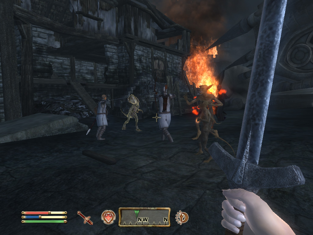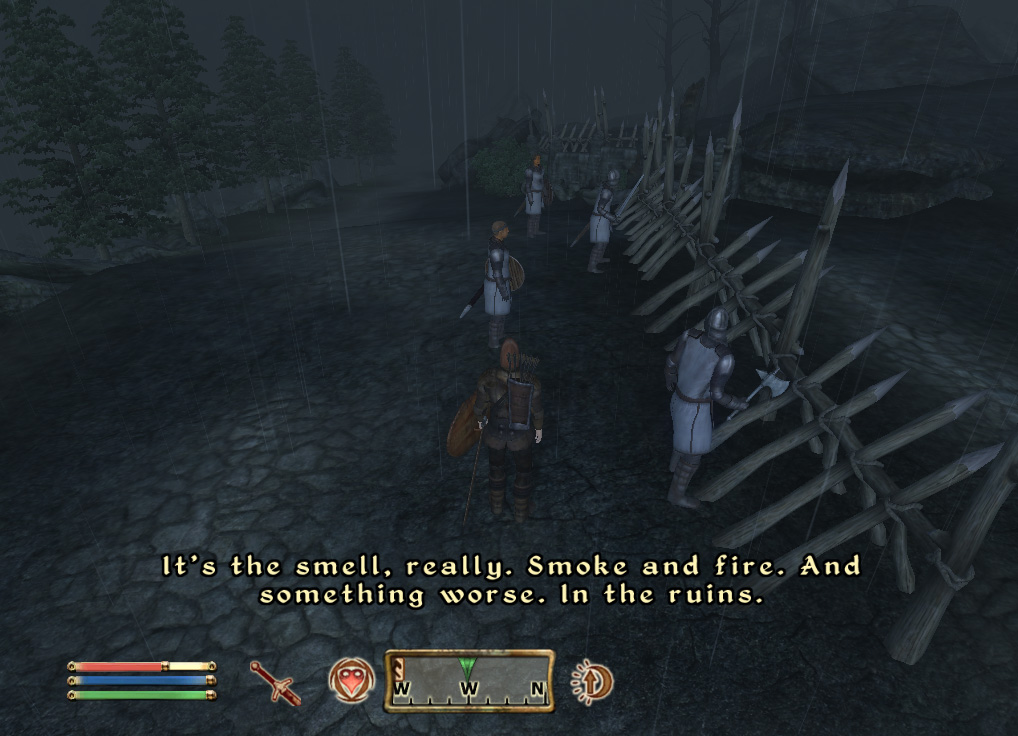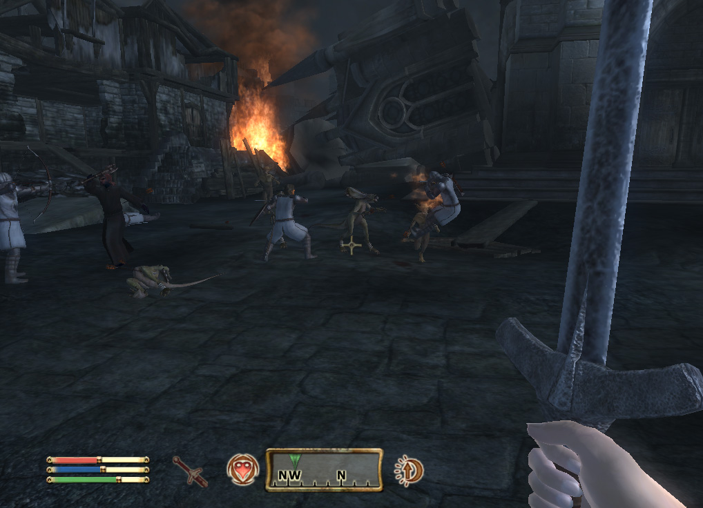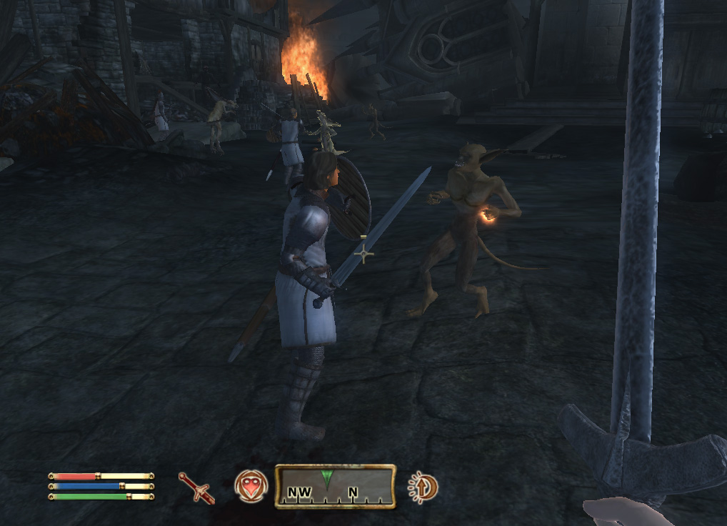 オブリビオンゲートが閉じた(あたしが閉じてあげた)いま,もうここでバリケードを保持する必要はない。だから隊長は戦力を動かしてKvatchを取り戻すための行動に出るらしい。