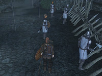 これまでバリケードの周りに立っていたガード達が,次々と街の中に入っていく。その後を追って門から中に入る。
