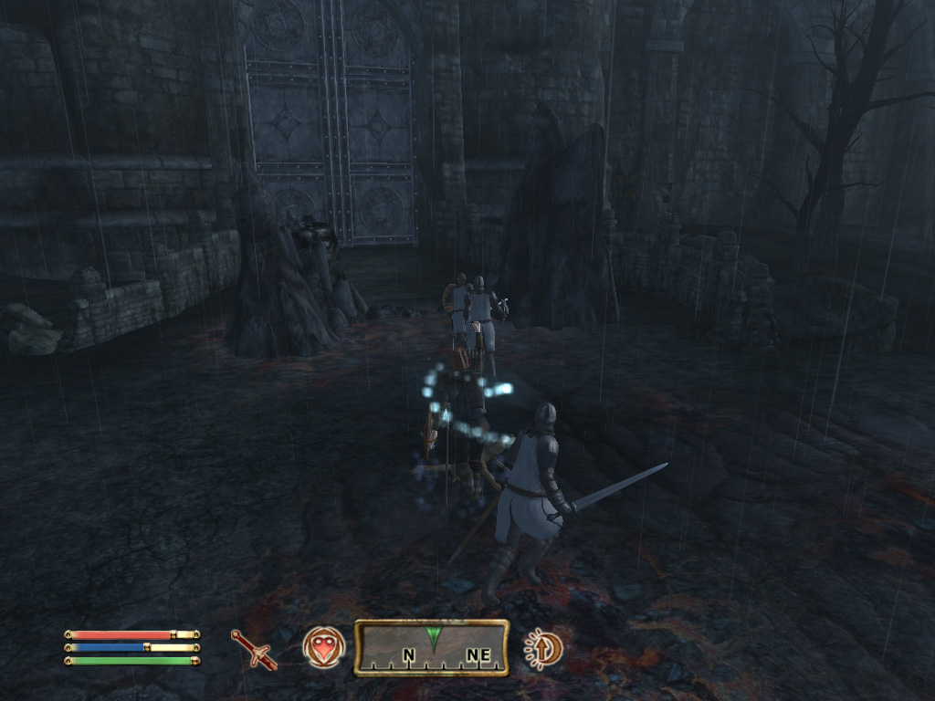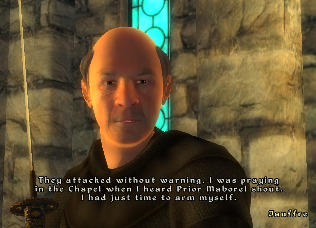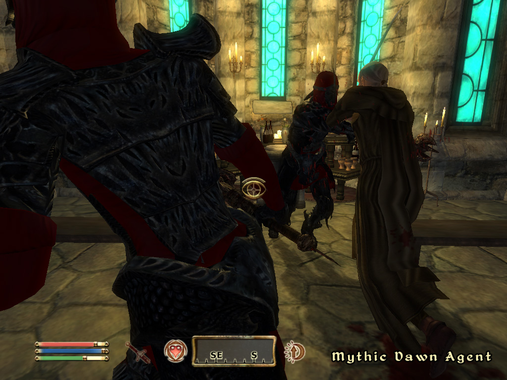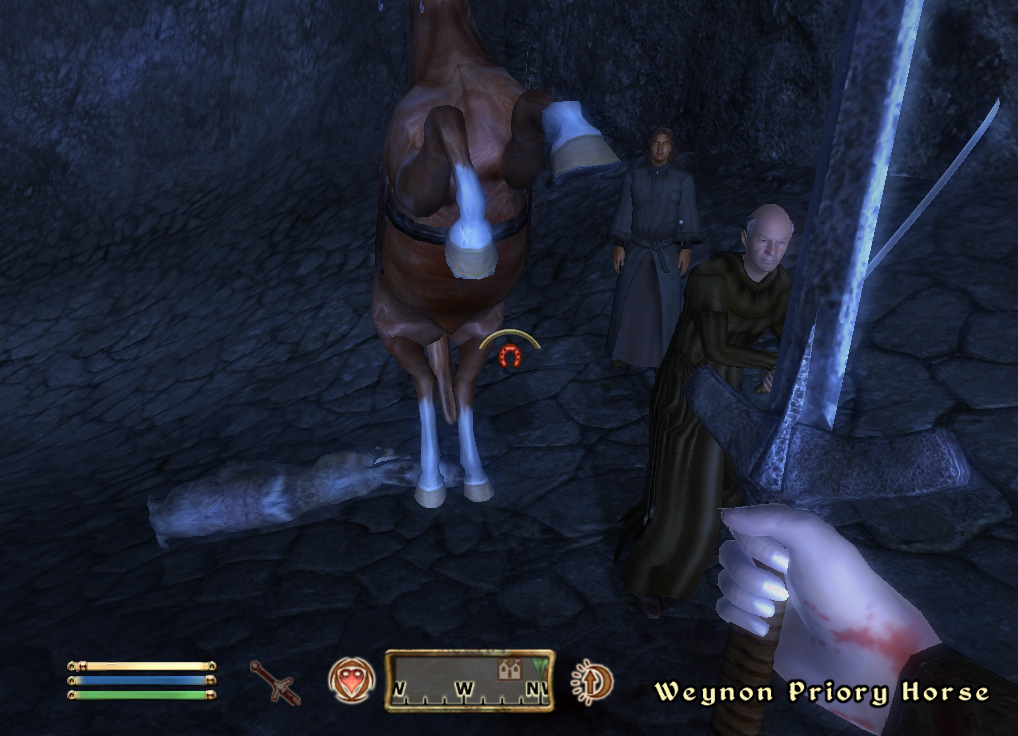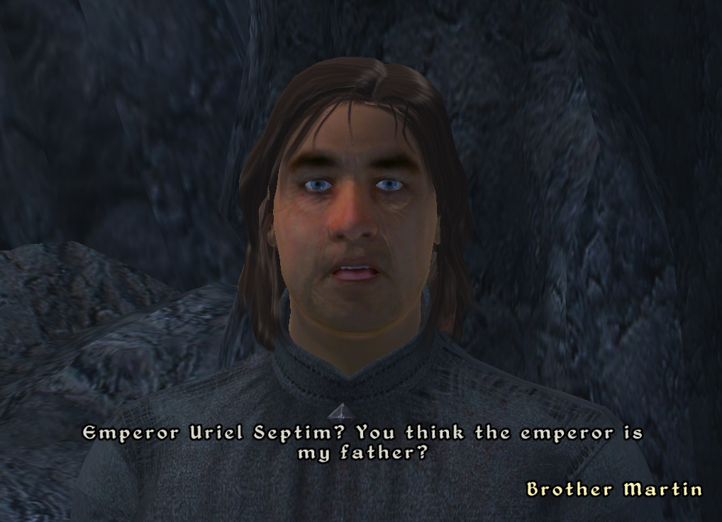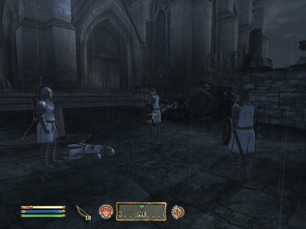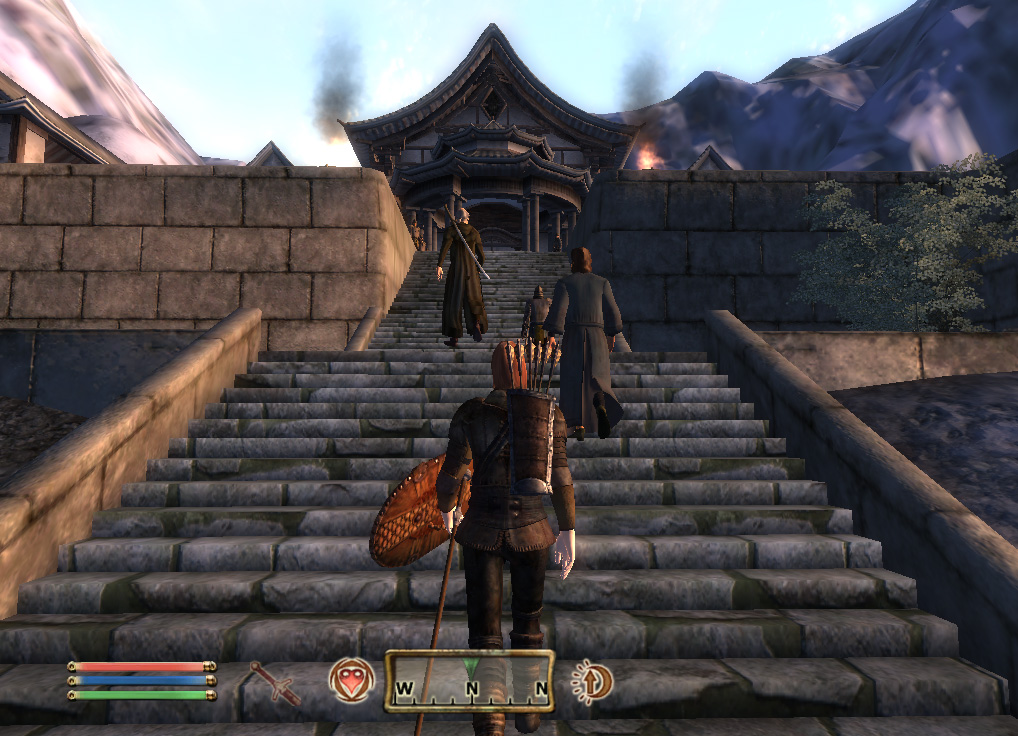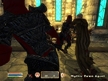 王子はちょうど門を出たあたりを歩いていた。捕まえて,あんたは王子だと話すと,そんな話は信じられないと言われる。確かにそうだよね,突拍子もない話ですもの。無理もないと思うわあたし。でも人々のためにオブリビオンゲートを閉じてくれたわけだからと,王子はこちらを信用してくれた。よし,目的の第一歩達成である。