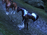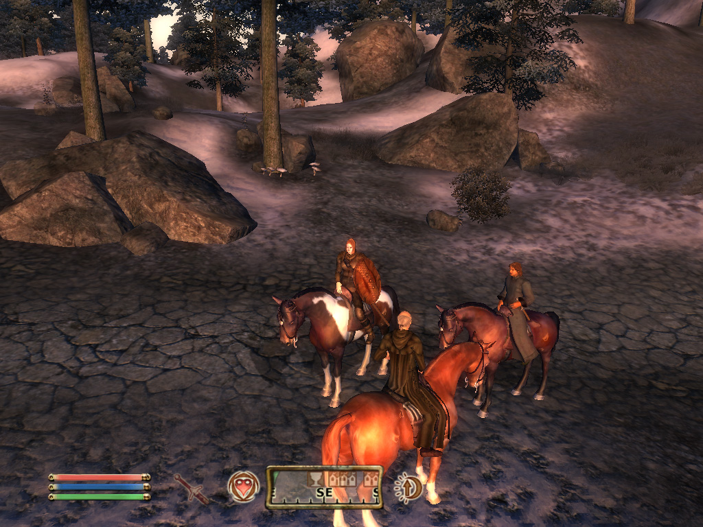 馬で三人連れだっての道中なんて結構珍しいかもしれない。だとすると,これをFast Travelでとばしてしまうのはちょっともったいない。きちんと馬を走らせて行くことにした。