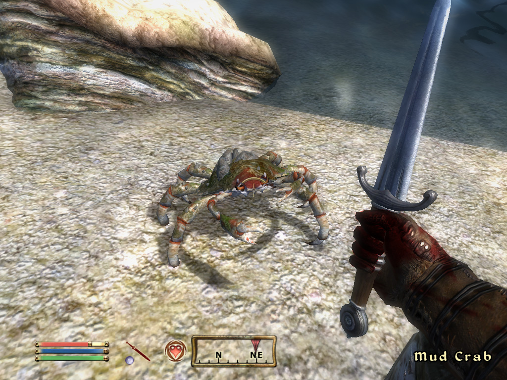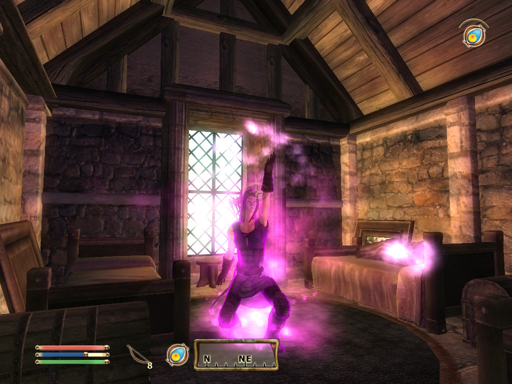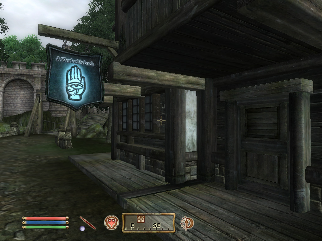 マジックアイテムのチャージには,“魂”が必要だ。たまに宝箱などから,この魂が元々込められたソウルジェムが手に入るので,いままではそうやって集めたストックを使ってきたのだが,いい加減自前で用意できるようにしなくてはならない。確かブラビル(Bravil)に魔法屋があったと思うので,そこに行ってみる。