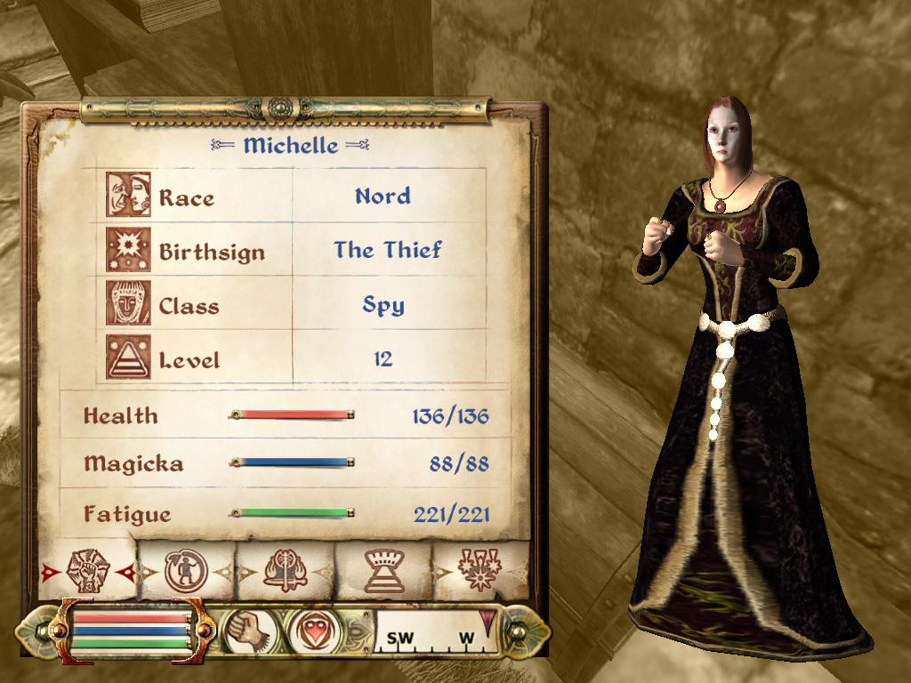 Intelligenceに関連するスキルというのはAlchemy,Conjuration,Mysticismの三つだ。MysticismはちょうどSoul Trapが属している魔法のスクール(スキル)なので,これを伸ばすと良さそうだ。いまでも唱えられるこのスクールの魔法には,「Minor Life Detection」(生物を発見しやすくする呪文。同じエリアであれば,壁の向こう側にいる生き物でも,ぼんやりとした紫色の光として見える)がある。今後しばらくはこの魔法をことあるごとに,いや,必要がなくても使うようにしていれば,きっとIntelligenceは効率良く上昇していくはず。