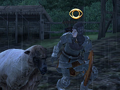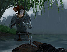 ああどうしよう。誰を殺そう。決められない。しょうがない,これから最初に出会った手頃な人物を殺そう……。冒険の拠点としているWeynon Prioryの建物を一歩出ると,ダークエルフの男性がいた……。