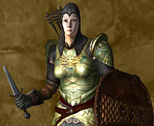 例の男に教えられた合言葉を言うと,中に入ることができた。さらに指定された人物に話しかけると,かなり好意的に迎えられたうえに,プレゼントだと言って一揃いのアーマーをもらってしまった。あらあらあら。まぁせっかくなので,あたし着てみる。