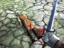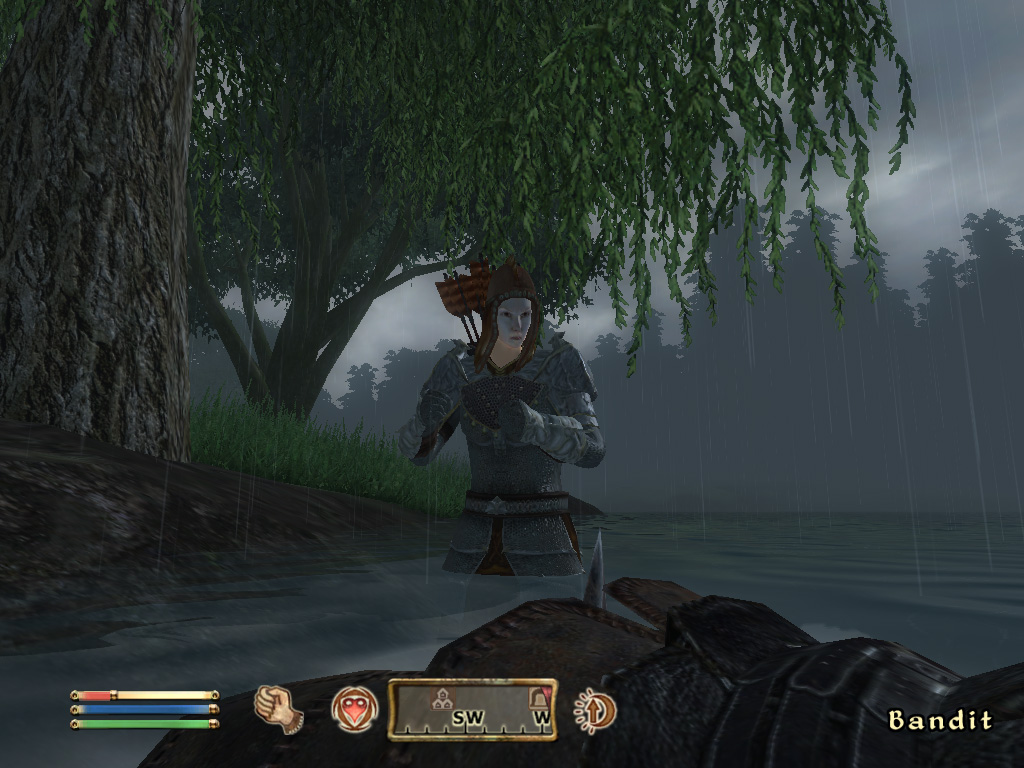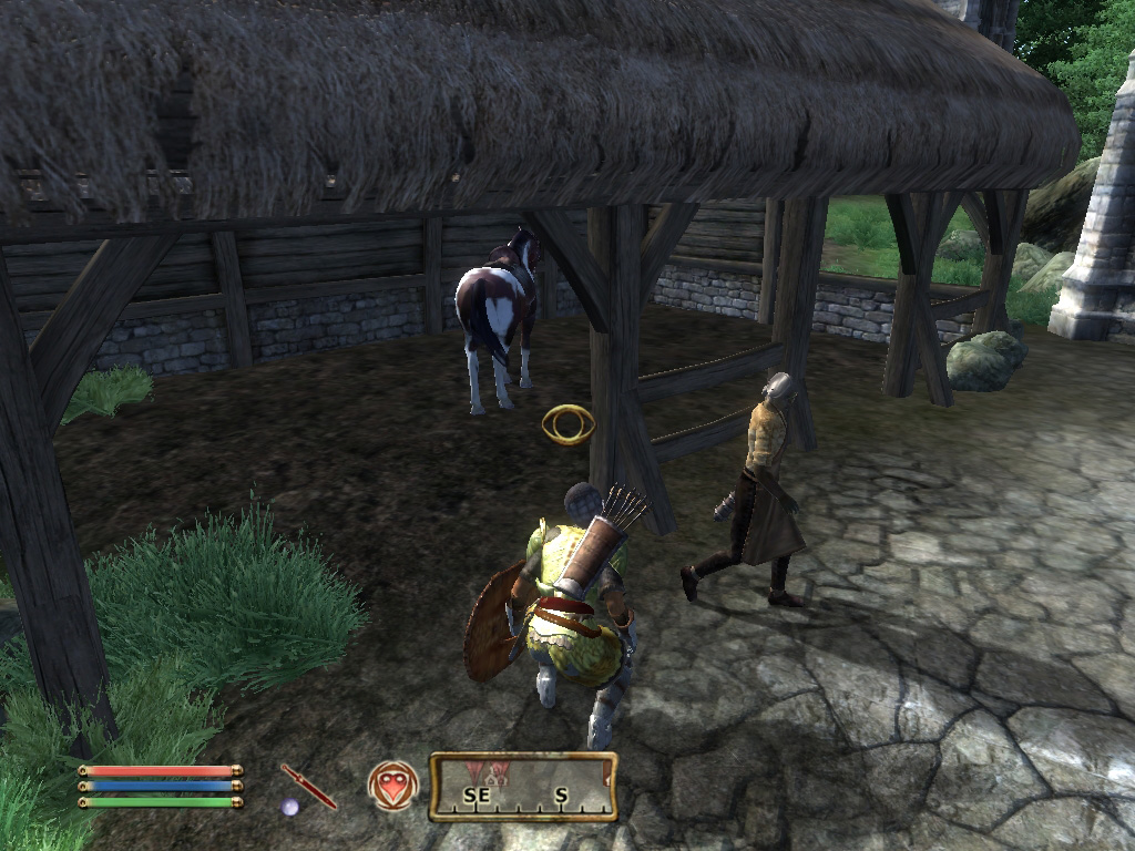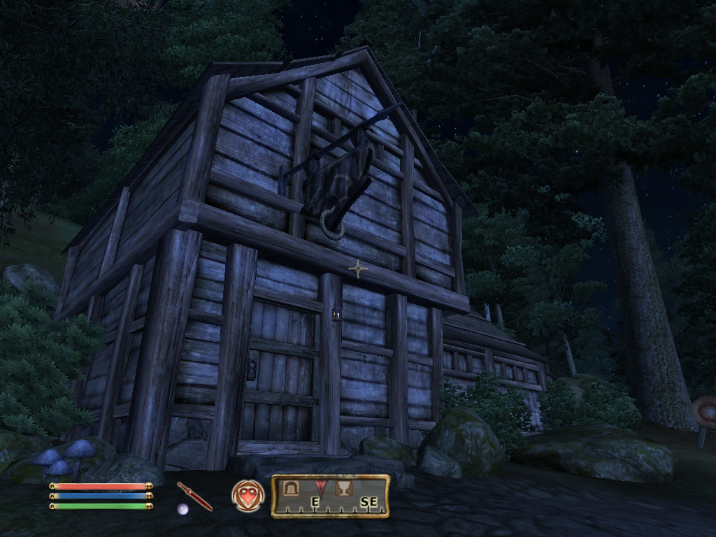 男はそう言って,一振りの剣「Blade of Woe」を置いて去っていった。……なるほど,次にすべきことは分かった。The Inn of Ill Omenは,最近よく利用していたブラビル(Bravil)へと続く道沿いにあるので,場所は分かっている。じゃあ……まぁ……い,行くか……行くぞ!