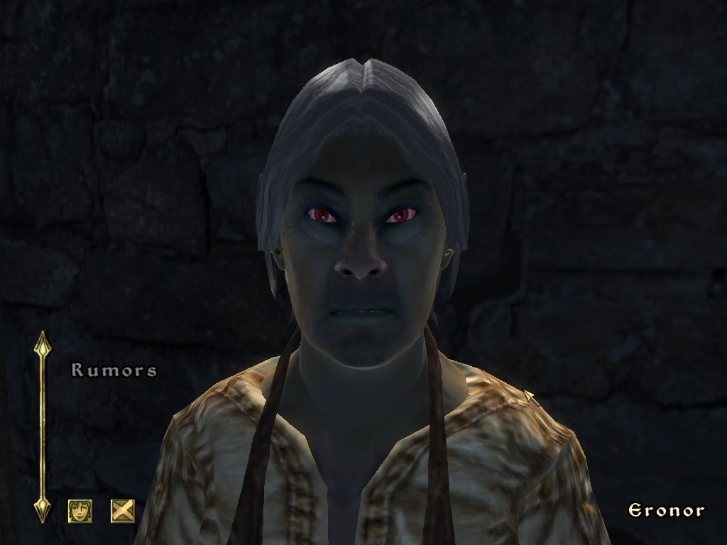 暗殺者ギルドとの接触に関するヒントは,実はこれまでの冒険の中で得ることができている。夜中に出歩いているときに,暗殺者ギルド“Dark Brotherhood”のうわさ話を耳にしたのだ。興味を惹かれたので「聞こえていないフリして,実は耳がダンボ キャッ( /ω\ )ハズカチイ」と言いつつ立ち聞きして,結局我慢できずに話しかけてみた。
