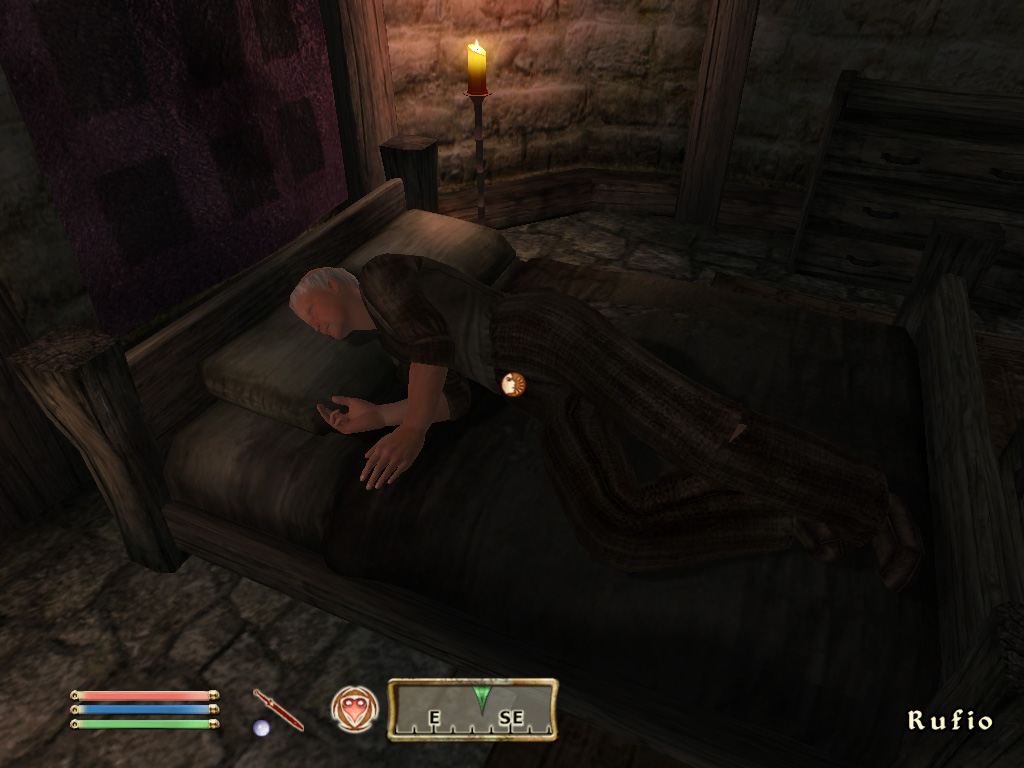 宿の主人の話によれば,Rufioはここ数週間ずっとこの宿に滞在している,偏屈な老人らしい。いったいどういう理由で暗殺団に狙われているのか知りたいと思って聞いてみるが,よく分からない。なんだろう。組織の裏切り者だったりとかするのかな?