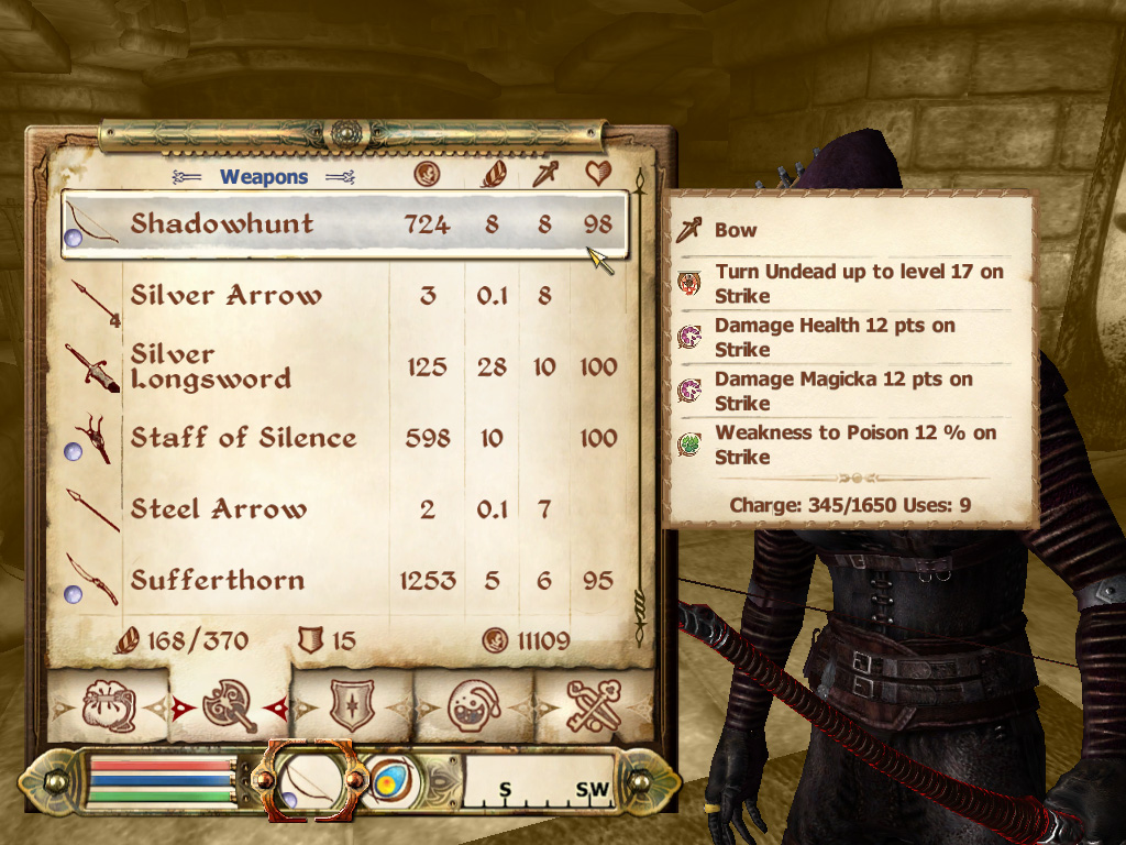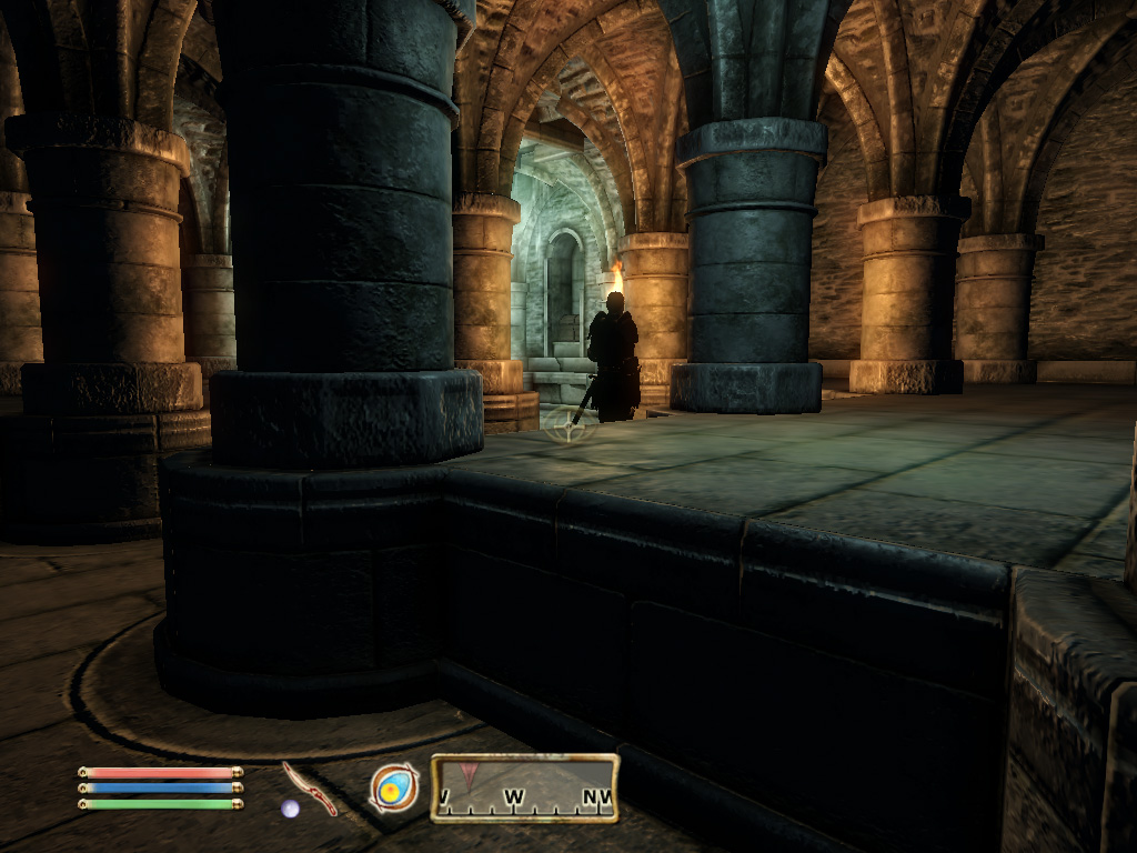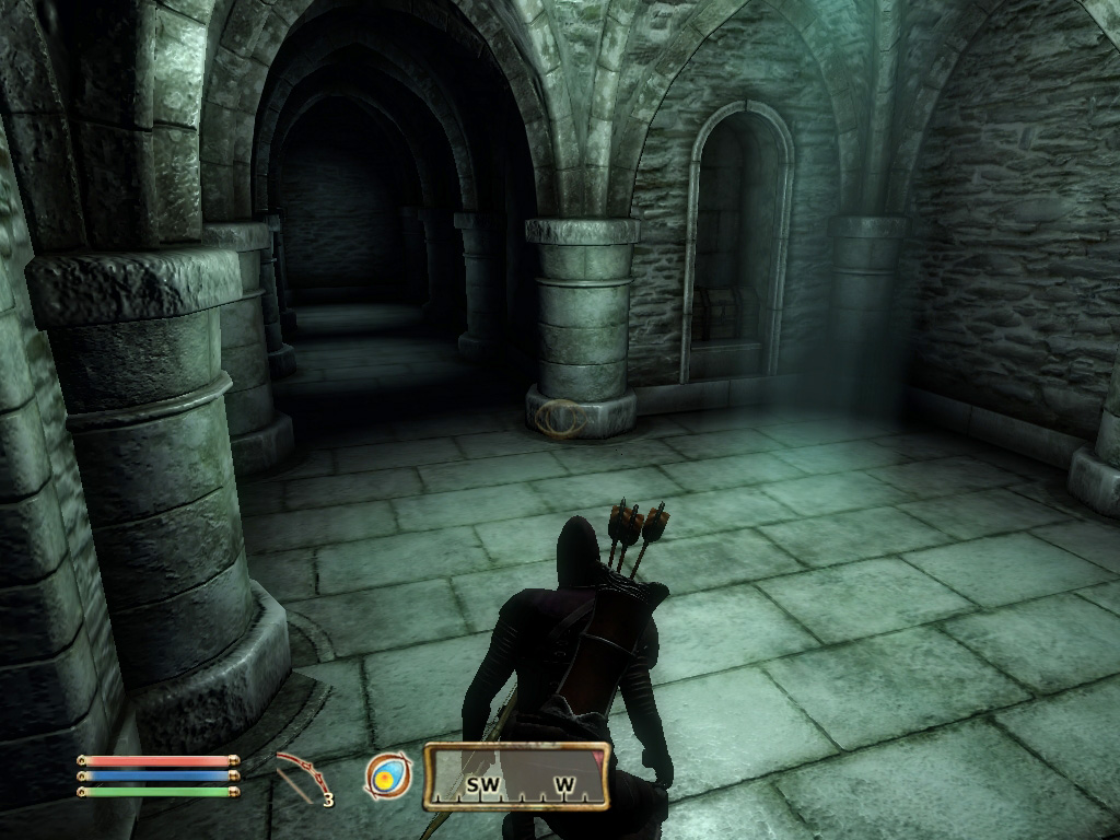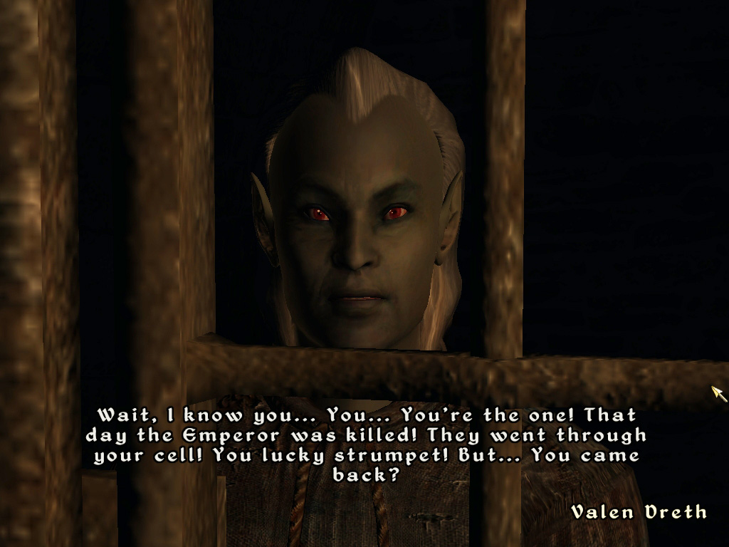 インペリアルシティの監獄にいるダークエルフを殺せというクエストよ。ターゲットのいる監房にたどり着くには,衛兵の巡回しているホールや通路をいくつも通り抜けなければいけないの。ことが荒立つとマズイから衛兵を殺すのは避けないとダメ。だからスニークを使って,まるで“サムおじさん”のように,見つからないようにこっそり進まなければいけないところがこのクエストのポイントね。ちなみに前回の「コードネーム47うんぬん」とかいうくだりは,またしても編集段階で勝手に加えられた内容なのだけれど,もういい加減フォローしきれないので拾わないわ。ゾルゲもそう。だいたい「ヒットマン」のファンとあたしのファンがかぶっているわけないじゃない。