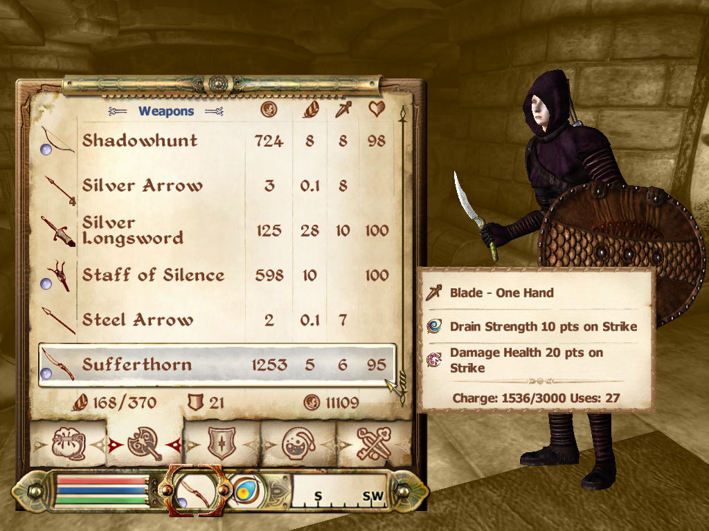 とくに追加ダメージの魔法がかかった片手用の刀と,放つ矢に魔法を付与できる弓がもらえたのは,あたしとしては凄く大きいかったわね。ダンジョン探険ではどちらもなかなか出なかったのに,これさえあればゾルゲだろうがハナゲだろうがポンポコピーのポンポ……
