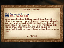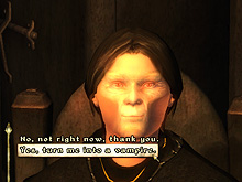 この人。暗殺者ギルドのメンバーでミッシェルにたびたび任務をくれた人なのだが,顔色と目の色が明らかにおかしい。そう,彼はバンパイアなのである。言い渡されるクエストをどんどんクリアしてったら,彼は興味深い提案を持ちかけてきた。